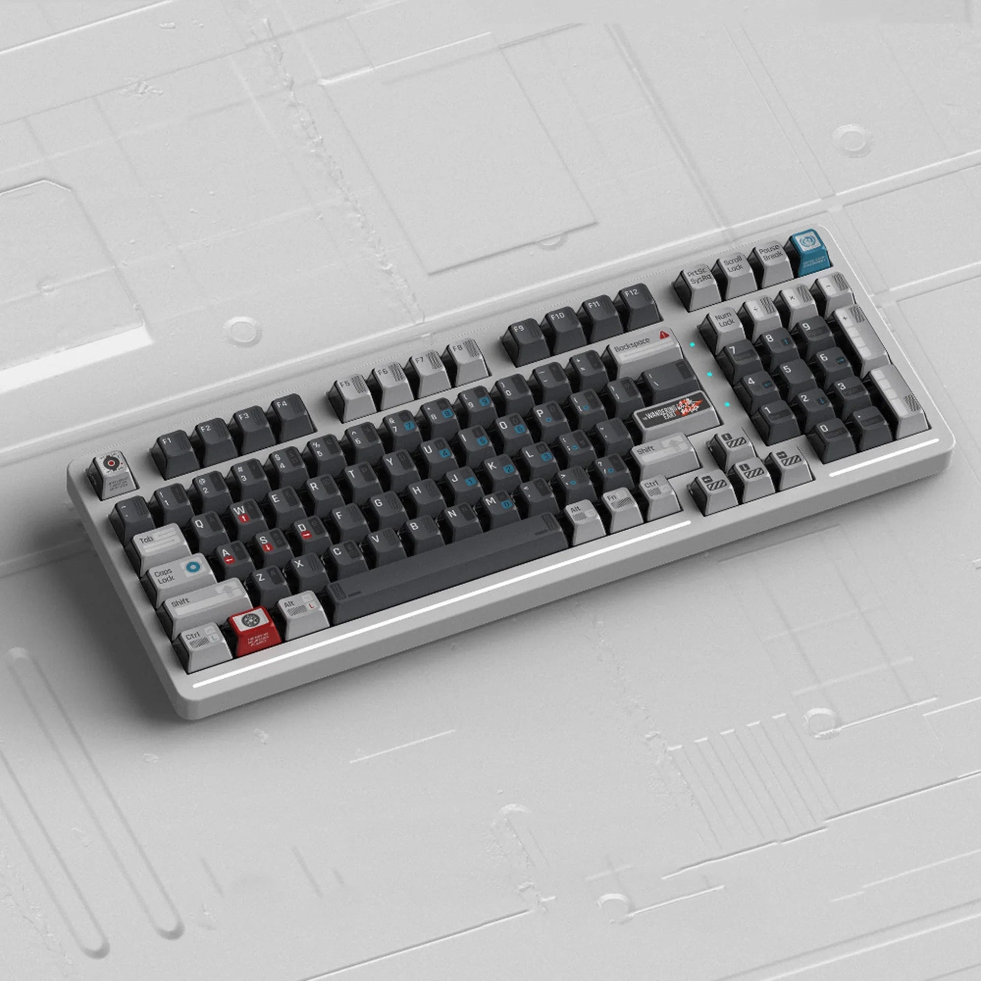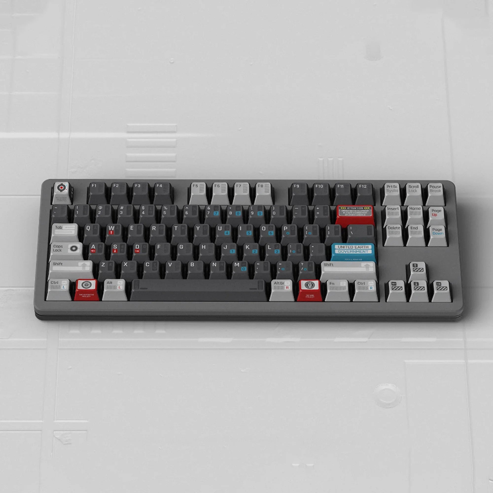 Industrial sci‑fi theme licensed with KeyTok’s KOL profile. The 154‑key all‑in‑one kit supports a wide range of layouts, and includes multiple shift sizes and spacebars for 60% through full‑size boards plus Alice.
