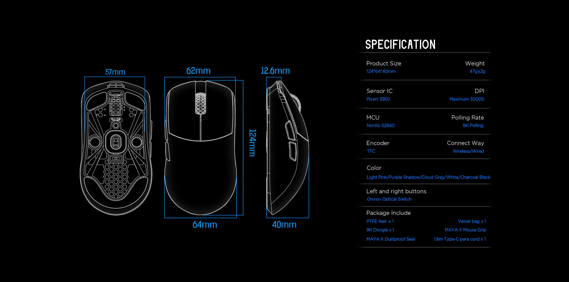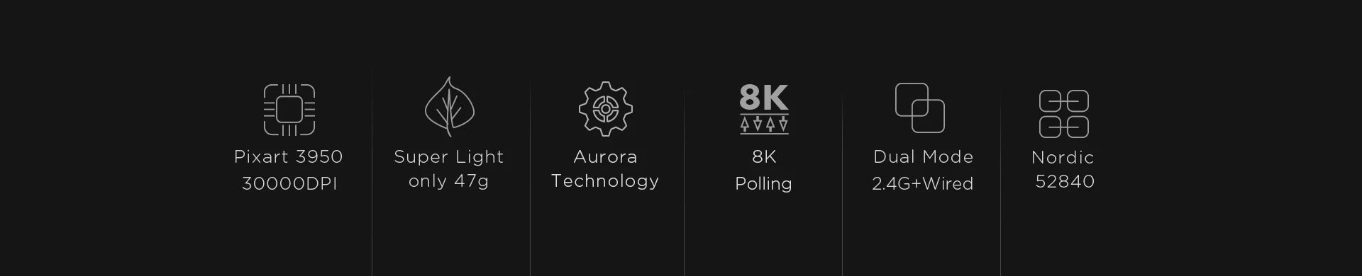 Ultra-lightweight wireless gaming mouse with PixArt 3950 sensor, true 8000 Hz polling rate, and esports-grade precision for competitive FPS Gaming.